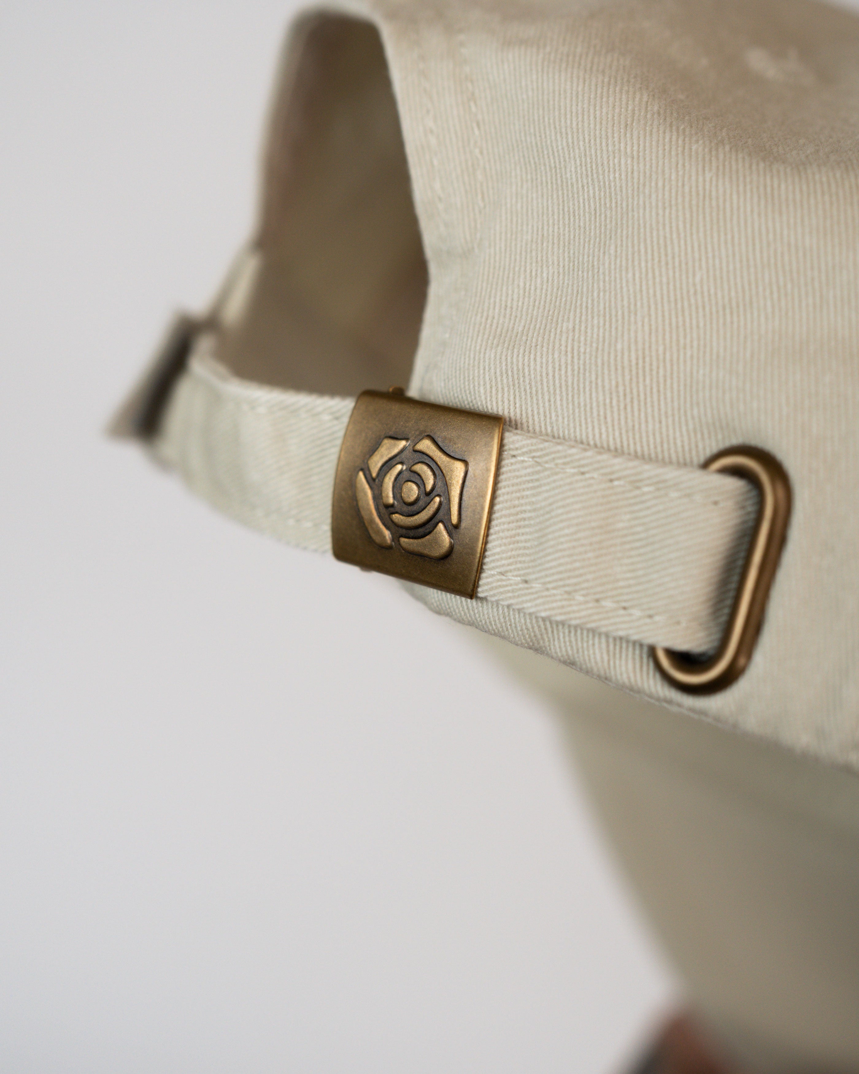 Low-profile, unstructured cap with embroidered front. Above-ear fit and self-fabric strap for natural comfort. Women's fit.